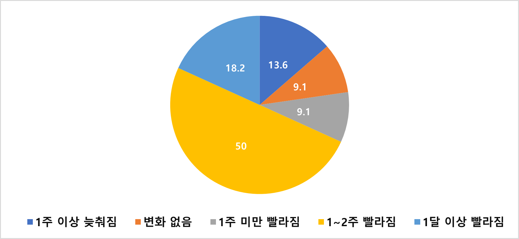 Q4. 실내 난방을 시작하는 시기가 5년 전 대비 얼마나 늦춰졌거나 빨라졌습니까? |