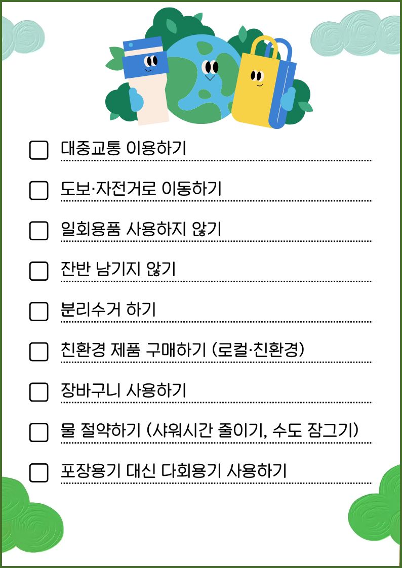 아래 체크리스트를 확인하고 하나씩 실천해 보세요!🌱